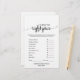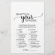 Dieses einfache schwarze Kalligrafie-Spiel "Was ist in deinem Handy" ist perfekt für eine rustikale oder moderne Babydusche. Auf der Vorderseite der Spielekarte steht "raten Sie den richtigen Preis", auf der Rückseite der Karte steht "Was ist in Ihrem Handy?". Das minimalistische Design besticht durch eine elegante Typografie und ein reizendes Herz. Personalisieren Sie die Vorderseite der Karte mit dem Namen des Mama-to-be- und Baby-Duschdatums. Sie können die Fragen des Spiels personalisieren, indem Sie auf den Button "Anpassen" klicken.
