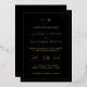 Einfache Hochzeitseinladung mit modernem und dennoch elegantem Design mit zwei Buchstaben-Monogramm oben, einem kühnen Datumslayout und Ihren Details, umgeben von einer dünnen Grenze. Alle Designelemente sind mit einer Goldfolie bedruckt, die auf einem schwarzen Hintergrund dargestellt ist. Eine schicke und stilvolle Einladung zum Hochzeitsfeiern, die für ein minimalistisches Paar ideal ist.