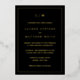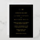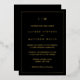 Einfache Schwarz-Gold-Hochzeitseinladung mit modernem und elegantem Design, oben mit zwei Buchstaben-Monogramm und Ihren Details, umgeben von einer dünnen Grenze. Dieses Design ist mit echter Goldfolie bedruckt. Diese minimalistische Art der Einladung zum Hochzeitsfeiern ist ideal für eine dunkle und moodisch-thematische Hochzeit.