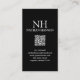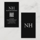 Moderne QR Code Visitenkarten mit einem einfachen und minimalen schwarzen Design mit Ihrem Monogramm in einem kühlen Schriftart und Ihrem Namen oben. Hier finden Sie Ihre Kontaktdaten.