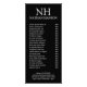Moderne Business-Rack-Karten mit einfachem und minimalem Schwarz-Design mit Ihrem Monogramm in einem kühlen Schriftart und Ihrem Namen oben. Nachfolgend finden Sie die Preisliste / das Service-Menü und Ihre Kontaktinformationen.