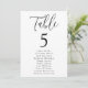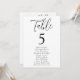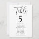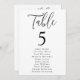 Modernes Hochzeitssitzdiagramm mit "Table", das in einem schwarzen Skript mit der unten abgebildeten Tischnummer und den Gästennamen auf weißem Hintergrund angezeigt wird. Das Design wiederholt sich auf der Rückseite. Um das Sitzdiagramm der Tischnummer zu bestellen, editieren Sie jede Karte mit der Tischnummer und den Namen der Gäste und fügen Sie es Ihrem Warenkorb hinzu. Entworfen, um mit unserer Simple Script Hochzeitskollektion zu koordinieren.