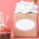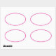 Dieser weiße Aufkleber hat einen heißen rosa Rand. Der Aufkleber und der Rand sind oval.