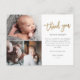 Dieses einfache Skript 3 Foto Collage Baby Dankeschön-Card bietet moderne Gold handgeschriebene Kalligraphie Dankeschön und persönliche Nachricht auf der Vorderseite. Klicken Sie auf die Schaltfläche Personalisieren, um dieses Design mit Ihren Fotos und Details anzupassen.