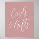 Einfaches und elegantes Hochzeitszeichen mit der Phrase "Karten und Geschenke", in weißem Schrift mit einem staubigen Hintergrund für die Rose dargestellt. Personalisieren Sie das Zeichen mit optionalem, benutzerdefiniertem Text, wie z.B. Ihren Namen, Hochzeitstag, Dankeschön-Nachricht, etc. Das Schild kann auch für andere Veranstaltungen wie Brautpartys, Babyduschen, Geburtstagspartys und vieles mehr verwendet werden!