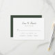 Diese moderne, minimalistisch-waldgrüne uAwg-Antwortkarte zeichnet sich durch ein einfaches Skript und ein elegantes Layout mit einer eigenen Auswahl an Speisen aus.