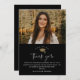 Einfach Script Schwarz und Weiß Foto Abschluss Dankeschön Card mit eleganter Goldfolie und minimalistischem Typografie-Absolvent. Klicken Sie auf die Schaltfläche Bearbeiten, um dieses Design anzupassen.