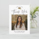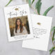 Einfach Script Schwarz und Weiß Foto Abschluss Dankeschön Card mit eleganter goldfarbener Folienkappe und minimalistischer Typografie und einem Foto vorne. Der Rücken hat eine Botschaft des Absolventen. Klicken Sie auf die Schaltfläche Bearbeiten, um dieses Design anzupassen.
