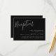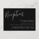 Elegante Hochzeitskarten mit "Empfang" in einem weißen Empfang mit einem schwarzen Hintergrund (oder einer beliebigen Farbe). Persönlich gestalten Sie die Hochzeitskarten mit den Details Ihres Empfangs in weißer Schrift. Entworfen, um mit unserer Simple Script Hochzeitskollektion zu koordinieren.