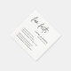 Machen Sie Ihre Hochzeitsfeier noch unvergesslicher mit unseren einfachen Script Black and White Wedding Fun Fakten Napkins. Diese Servietten sind für Eleganz und Charme konzipiert und eignen sich perfekt für Cocktailstunden, Empfang oder Brautpartys. Mit einem minimalistischen Skriptdesign bieten sie einen lustigen und personalisierten Weg, interessante Details über das Paar mit den Gästen zu teilen. Ideal für moderne, traditionelle oder schicke Hochzeitsthemen, fügen diese Servietten eine stilvolle und dennoch funktionale Touch zu Ihrem besonderen Tag hinzu. Sie sind individuell auf Ihre Bedürfnisse zugeschnitten und bieten eine große Ergänzung zu jeder Hochzeitsveranstaltung, von intimen Ansammlungen bis hin zu großen Festlichkeiten.