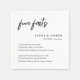 Erleben Sie ein einzigartiges und eindrucksvolles Erlebnis für Ihre Hochzeitsgäste mit unseren Simple Script Black and White Wedding Fun Facts Napkins. Diese Servietten sind perfekt für Empfänge, Cocktailstunden oder Probe-Dinners geeignet und vereinen ein minimalistisches Schwarz-Weiß-Design mit personalisierten Unterhaltungsfakten. Diese Servietten sind so konzipiert, dass sie eine Vielzahl von Hochzeitsthemen ergänzen, von modern bis elegant, und sorgen für ein persönliches und interaktives Element. Freuen Sie sich auf interessante Gezeitenunterschiede und die Ästhetik Ihres besonderen Tages. Individuell und stilvoll sind sie ein gedankliches Detail für jede Hochzeitsveranstaltung.