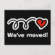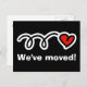Einfache bewegliche Postkarten mit niedlichem Herzdesign. Benutzerdefinierter Bewegungstext; Wir sind umgezogen! Fügen Sie Ihre neue Adresse auf der Rückseite ein. Moderne neue Hauskarten für Zuhause und Business.