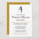Hochzeitseinladung, die Braut- und Bräutigam-Silhouetten mit Goldakzenten kennzeichnet. Wählen Sie Ihre Hintergrund- und Akzentfarben.