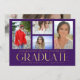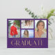 Die Simple Script Multi Foto Abschluss Announcement Card beinhaltet vier Ihrer Lieblings-Fotos Ihrer Uni oder High School Absolventen mit dem eleganten, modernen Goldkalligraphie-Skript "Graduate" Overlay. Fügen Sie auf der Rückseite ein zusätzliches Foto hinzu. Einfach, stilvoll und elegant. Erstellt von ©Evco Studio www.zazzle.com/store/evcostudio