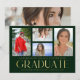 Die Simple Script Multi Foto Abschluss Announcement Card beinhaltet vier Ihrer Lieblings-Fotos Ihrer Uni oder High School Absolventen mit dem eleganten, modernen Goldkalligraphie-Skript "Graduate" Overlay. Fügen Sie auf der Rückseite ein zusätzliches Foto hinzu. Einfach, stilvoll und elegant. Erstellt von ©Evco Studio www.zazzle.com/store/evcostudio