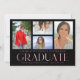 Die Simple Script Multi Foto Abschluss Announcement Card beinhaltet vier Ihrer Lieblings-Fotos Ihrer Uni oder High School Absolventen mit dem eleganten, modernen rosa Kalligraphieskript "Graduate" Overlay. Fügen Sie auf der Rückseite ein zusätzliches Foto hinzu. Einfach, stilvoll und elegant. Erstellt von ©Evco Studio www.zazzle.com/store/evcostudio