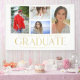 Das Simple Script Multi Foto Abschluss Announcement Banner enthält vier Ihrer Lieblings-Fotos Ihrer Uni oder High School Absolventen mit dem eleganten, modernen Goldkalligraphie-Skript "Graduate" Overlay. Perfekt für eine Graduation Party Einfach, stilvoll und elegant. Erstellt von ©Evco Studio www.zazzle.com/store/evcostudio