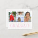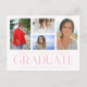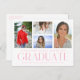 Simple Script Multi Foto Abschluss Announcement Postcard bietet vier Ihrer Lieblings-Fotos Ihrer Uni oder High School Absolvent auf der Vorderseite mit dem eleganten modernen rosa kalligraphischen Skript "Graduate" Overlay. Personalisieren Sie diese mit einer Nachricht auf der Rückseite. Einfach, stilvoll und elegant. Erstellt von ©Evco Studio www.zazzle.com/store/evcostudio