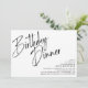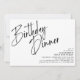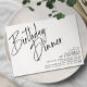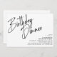 Moderne minimale Art Geburtstagsessen Einladungen mit der Überschrift "Geburtstagsessen" in einem Schriftart mit Pinselschrift. Off-Center Design mit Ihren Veranstaltungsdetails in der unteren rechten Ecke. Schwarzer Text auf weißem Hintergrund.