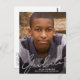 Diese einfache, moderne Abschluss-Postkarte verfügt über ein Imitat Silber-Folie-Skript-Overlay und komplettes Foto. Auf der Vorderseite wird "Graduate" unten in handgeschriebenem Skript über einem großen, vertikalen Foto angezeigt. Fügen Sie den Namen und das Foto Ihres Absolventen, das Jahr des Abschlusses und die Schule hinzu. Auf der Rückseite können Sie eine längere Nachricht an Empfänger schreiben und/oder die Details der Graduierungspartei einschließen.