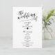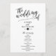 Das elegante, stilvolle und moderne Schwarz-Weiß-Hochzeitsprogramm besticht durch eine stilvolle Schrift. Personalisieren Sie Ihre Daten mithilfe der bereitgestellten Vorlagenfelder. Besuchen Sie unbedingt die Sammlung, um mehr Elemente zu sehen, die sich koordinieren!