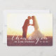 Einfaches handgeschriebenes Script Overlay Foto Hochzeit Dankeschön Karten. Design von Elke Clarke© für MonogramGallery, gedruckt von Zazzle. Senden Sie Ihre Hochzeit Dankeschön Nachricht als neue Weds an Ihre Freunde und Familie mit dieser schönen, einfachen Dankeschön Hochzeit Foto-Karte mit den Worten "danke" geschrieben in einer weißen Hand schreiben Typografie Skript-Text-Overlay. Ersetzen Sie das Beispiel-Foto durch das eigene. Fügen Sie Ihre persönliche Danksagung auf der Rückseite. Andere Farben sind verfügbar.