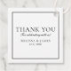 Einfache Liebesmarke für Hochzeit. Auf beiden Seiten ein elegantes Drehbuch "Danke" mit Namen und Datum.