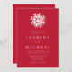 Feiern Sie Ihren besonderen Tag mit unserer Einfach Schneeflocken roten Hochzeitseinladung. Dieses elegante Design mit einer fett weißen Schneeflocke vor einem auffallenden roten Hintergrund ermöglicht es Paaren, sich mit ihren Namen und Hochzeitsdetails in weißen Serifenschrift und Kalligraphie-Akzenten zu personalisieren. Ideal für moderne Winter-, Ferien- und Weihnachtsfeiern, ist diese Einladung ein Set für ein festliches und unvergessliches Fest.