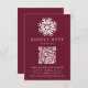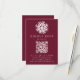 Mit der Einfach Snowflake Wine QR Code Wedding RSVP Card, die perfekte Wahl für Winter-, Ferien- oder Weihnachtsfeiern! Diese elegante Karte besticht durch eine fette, weiße Schneeflocke auf einem weinfarbenen Hintergrund und verleiht Ihrem Hochzeitsgeschenk einen festlichen Charme. Passen Sie es mit Ihrem Wunschtermin an und fügen Sie einen QR-Code mit Ihrer Hochzeitswebsite hinzu, der es den Gästen leicht macht, online UAWG zu machen. Mit dieser schön gestalteten RSVP-Karte können Sie Ihre Hochzeitsplanung optimieren und gleichzeitig eine Touch Winterzauber zu Ihrem besonderen Tag hinzufügen!