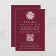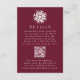 Die Einfache Snowflake Wine Wedding Details QR Code Enclosure Card, perfekt für Winter, Urlaub oder Weihnachten Hochzeiten! Diese elegante Karte bietet eine fett weiße Schneeflocke auf einem weinfarbenen Hintergrund und bietet eine stilvolle Möglichkeit, wichtige Details mit Ihren Gästen zu teilen. Einfach anpassen mit Informationen über Unterkunft, Transport, Empfang und mehr. Fügen Sie Ihre Hochzeitswebsite zum QR-Code hinzu, damit die Gäste UAWG erhalten oder auf weitere Informationen zugreifen können. Machen Sie Ihren besonderen Tag nahtlos und unvergesslich mit dieser wunderschön gestalteten Hochzeitszimmerkarte!