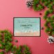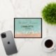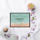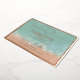Einfache, moderne Sommer Badestrand Hochzeit Einladung. Modernes Meer und Sand mit einem Hauch von blauer Kunst zeichnend