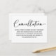 Moderne einfache schwarz-weiße Stornierung Postkarte. Design mit kalligrafischem Skript ''Annullierung'' und Ihrer Nachricht in trendy Blockschrift. Ideal, um Ihr Party oder Ihre Veranstaltung zu stornieren, zu verschieben oder zu verschieben.