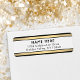 Fügen Sie eine elegante Touch zu den Umschlägen mit stilvollen Rücksendeadressen-Aufklebern in Schwarz, Gold und Weiß hinzu. Text auf dieser Vorlage ist einfach zu personalisieren. Das Design besticht durch eine schicke, moderne Typografie und klassische Imitate mit Goldfolie und weißen horizontalen Streifen. Bitte beachten Sie, dass Gold farblich gedruckt ist, nicht metallische Folie.