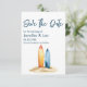 Fügen Sie Ihrem besonderen Tag eine Touch ozeanischen Charmes hinzu, mit diesem Surfboard in Aquarell Save the Date. Ideal für Hochzeiten am Strand, nautische Feste oder Veranstaltungen mit Meeresblick, kombiniert dieses Design elegant und einfach. Personalisieren Sie es für Ihren besonderen Tag. Diese Einladungen sind auf hochwertigem, langlebigem Material gedruckt und so praktisch wie schön. Feiern Sie Ihre Liebe mit einem Detail, das die Ruhe und Schönheit des Meeres widerspiegelt. Ideal für Hochzeiten an der Küste!