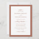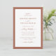 Einfache Terracotta Hochzeitseinladung. Machen Sie Ihre Hochzeitseinladung so unvergesslich wie Ihr besonderer Tag mit diesem schicken und stilvollen Design. Dieses moderne, nur in Text gehaltene, minimalistische Design mit klassischer traditioneller Touch besticht durch ein handgeschriebenes Kalligrafieschrift mit einem klassischen Rahmen aus Terrakotta/gebrannt Orange. In der Simple Elegant Terracotta Border Wedding Suite finden Sie koordinierende Produkte.
