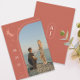 Terracotta unter dem Mond und Stars Save the Date Hochzeitsankündigung. Datum und individuelles Foto auf dem Cover und Monogramm auf der Rückseite.