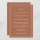 Einfach verbrannte orangefarbene Terracotta Hochzeitseinladung mit modernem und elegantem Design mit zwei Buchstaben Monogramm oben und Ihren Details umgeben von einer dünnen Grenze. Die Schriftart und Hintergrundfarben können durch Anklicken des Buttons "Anpassen" in beliebig viele Farben geändert werden. Ein Design, das für ein minimalistisches Paar hervorragend geeignet ist.
