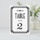 Diese Tischnummern sind mit einer Schwarz-Weiß-Farbpalette, einem geometrischen Rahmen und anderen stilistischen Details inspiriert, die alle durch Art Deco und die rauschenden Zwanziger Jahre. Sie können die Textfelder des Beispiels nach Ihren Wünschen anpassen.