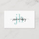 Dieses moderne Design der Visitenkarte ist in einem handgeschriebenen Kalligrafieschrift mit führenden und hinterlegenden Schwänzen gestaltet und bietet ein stilvolles Aussehen. Ihre ersten und letzten Initialen werden in einem modernen industriellen Serifengesicht in Aqua aquamarin unter der Kalligraphie präsentiert. Das Ergebnis sind Sie! Die Textvorlage auf der Rückseite der Karte hat Platz für alle Informationen, die Sie normalerweise auf Ihrer Karte teilen würden. Sie können diesen Text nach Belieben hinzufügen oder entfernen. BITTE BEACHTEN SIE: Wenn Sie Ihren Namen auf der Kartenvorderseite personalisieren, achten Sie darauf, die Kästensymbole vor und nach Ihrem Namen verlassen. Das veranlasst die schönen Schwanz, vor und nach Ihrem Namen zu drucken.