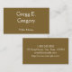 Dieses einfache und minimale Design der Visitenkarte zeichnet sich durch einen braunen Hintergrund aus. Es könnte von einem berufliche wie einem öffentlichen Notar, Anwalt oder Anwalt verwendet werden. Name, Beruf und Kontaktdaten können personalisiert sein.