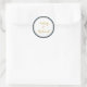 Einfache und elegante Namen marinieren blau, gold und weiß Hochzeit Classic Round Sticker. Es zeigt Ihre Namen auf Weiß mit einem marineblau Rahmen an. Es koordiniert mit unserer Hochzeitskollektion "Pink and Navy Blue Tropical Blätter".