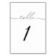 Diese elegante schwarze Kalligraphie-Tischnummer eignet sich perfekt für eine Hochzeit. Das neutrale Design besticht durch eine minimalistische Karte, die mit romantischer und skurriler Typografie dekoriert ist. Die Karte druckt auf der Vorder- und Rückseite (beidseitig). Zahlen können im Personalisierungsfeld geändert werden.
