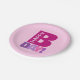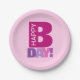 Ein Set von einfach und lustig gürtnisch rosa Happy Birthday Papier Teller mit den Worten "Happy Bday!" in verschiedenen Tönen von Rosa und lila. Machen Sie es zu einem Set mit Papierservietten und Papiertassen!