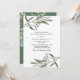 Diese moderne botanische Einladung mit einem schönen Aquarell-Eukalyptusgrün und eleganten Buchstaben
