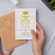 Die Einfache Abschluss-Einladung ist der Inbegriff zeitloser Schönheit. Das Single-Line-Board verleiht ihm seine Eleganz, und die handgezeichnet Abschluss-Elemente der Graduierungskappe und Scroll sorgen für das traditionelle Flair. Die personalisierenden Funktionen sind so einfach wie möglich, damit Sie alle Änderungen am Design in kürzester Zeit vornehmen können. Machen Sie einfach weiter und machen Sie die Änderungen und machen Sie dieses Design zu Ihrem!