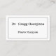 Dieses benutzerdefinierbare, einfache und elegante Design der Visitenkarte zeichnet sich durch einen weißen Hintergrund und einen dreizeiligen Rahmen aus. Es kann von einem beruflichen wie einem plastischen Chirurgen, einem Allgemeinchirurgen, einem Arzt oder einem Hausarzt der Primärversorgung verwendet werden. Name, Beruf und Kontaktdaten können personalisiert sein.