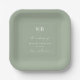 Einfache Vollfarbleder Grüne Hochzeitsmonogramm Pappteller