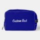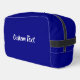 Dieses marineblau Dopp Kit hat Text in weißem Skript. Der Text kann bearbeitet oder gelöscht werden.