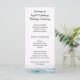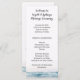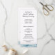 Große, zweiseitige, karibische Hochzeitszeremonie-Programmvorlage. Einfache, sehr hellgraue Karten mit blauem Wasser-Bild auf beiden Seiten unten. Lässiger gedruckter Schriftart-Stil für alle Zeremonieinformationen und modernes Drehbuch für den Titel und die Nachricht. Das Programm ist perfekt für eine kleine Hochzeitsfeier in der Nähe von Wasser oder auf einem Schiff.