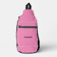 Dieser rosa Slingsack hat Text in schwarzem Schrift. Der Text kann bearbeitet oder gelöscht werden.